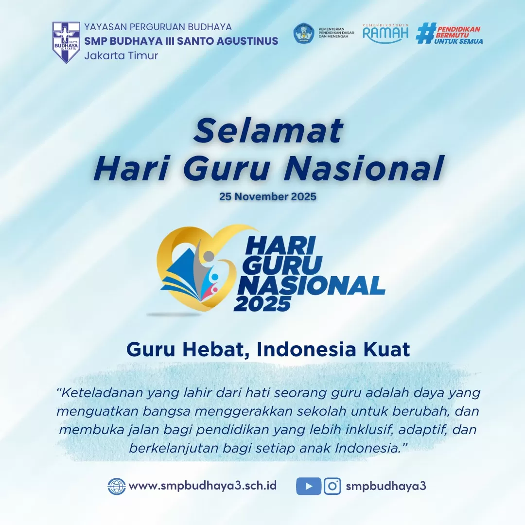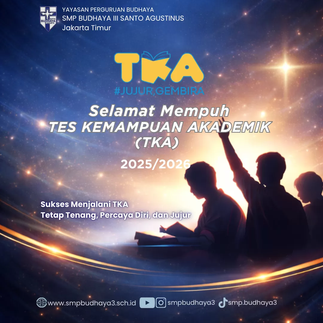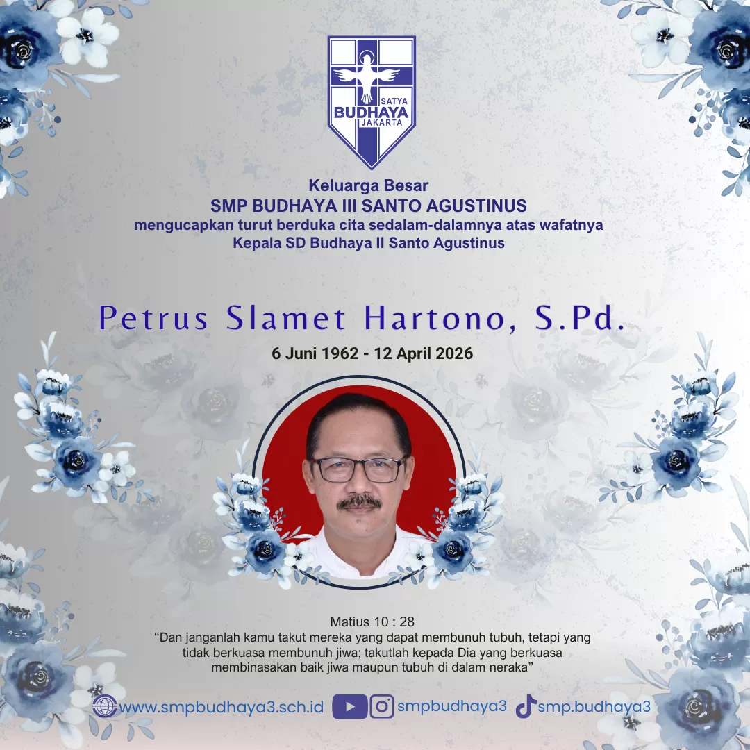 Dengan penuh sukacita, kami menyambut Anda di website resmi SMP Budhaya III Santo Agustinus. Semoga berkat Tuhan senantiasa menyertai kita semua dalam setiap langkah dan usaha kita, khususnya dalam misi mulia untuk mendidik dan membimbing generasi muda yang beriman dan berkarakter.