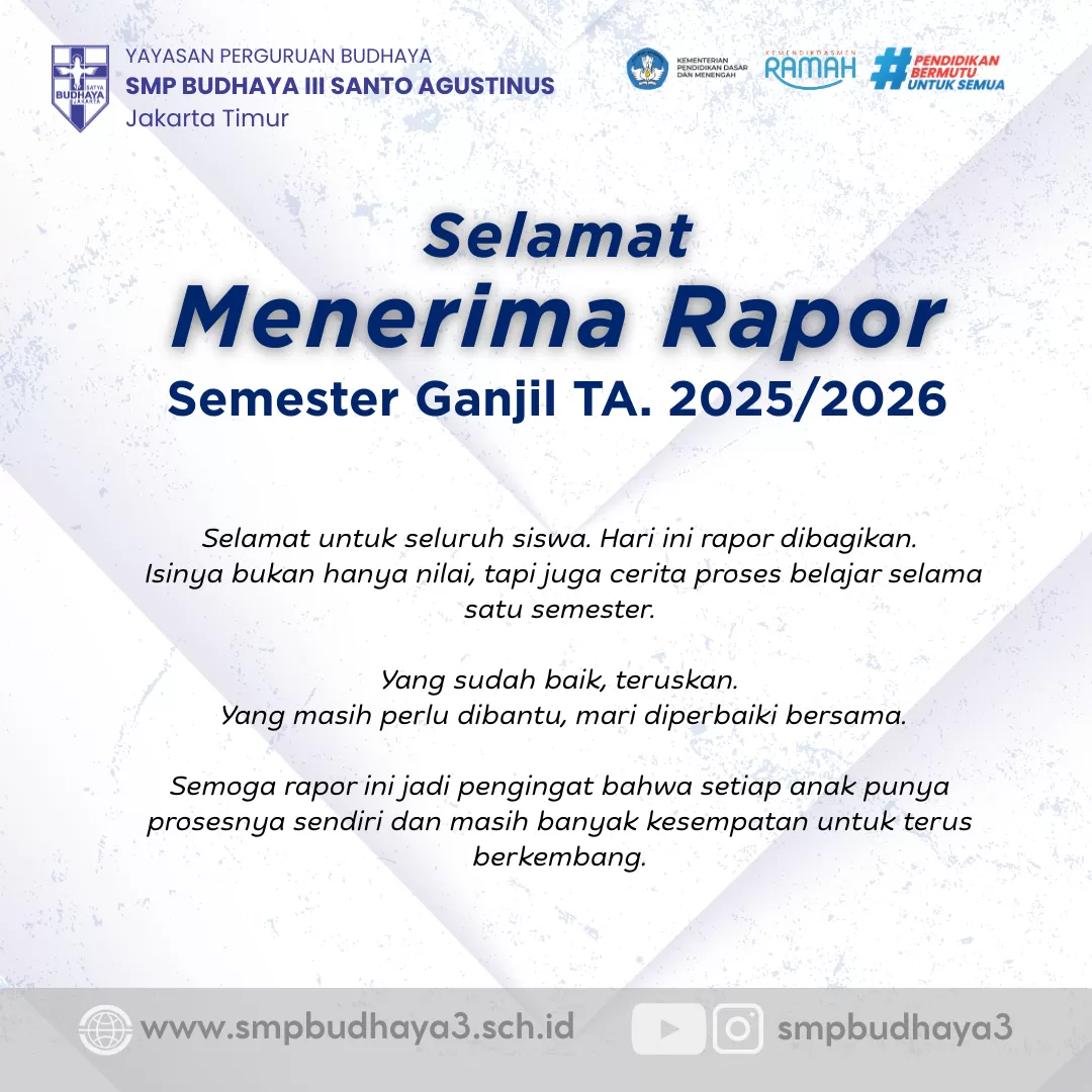 Dalam era digital yang terus berkembang, kami merasa sangat berbahagia dapat menghadirkan website ini sebagai salah satu bentuk komitmen kami dalam meningkatkan pelayanan kepada masyarakat, khususnya bagi keluarga besar SMP Budhaya III Santo Agustinus. Website ini dirancang untuk menjadi sarana informasi publik yang efektif dan transparan, serta menjadi jembatan komunikasi antara sekolah, siswa, orang tua, dan seluruh masyarakat.