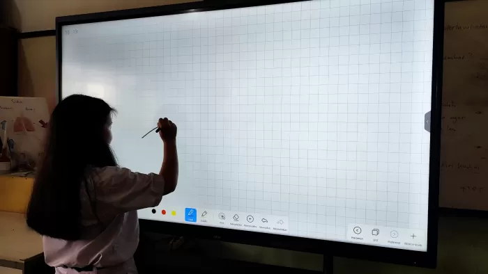 Selain mendukung guru dalam menjelaskan materi, Smart Board juga membuka kesempatan untuk menghadirkan sumber belajar dari internet maupun aplikasi edukasi. Dengan begitu, siswa semakin terbiasa menggunakan teknologi dalam proses belajar sehari-hari.