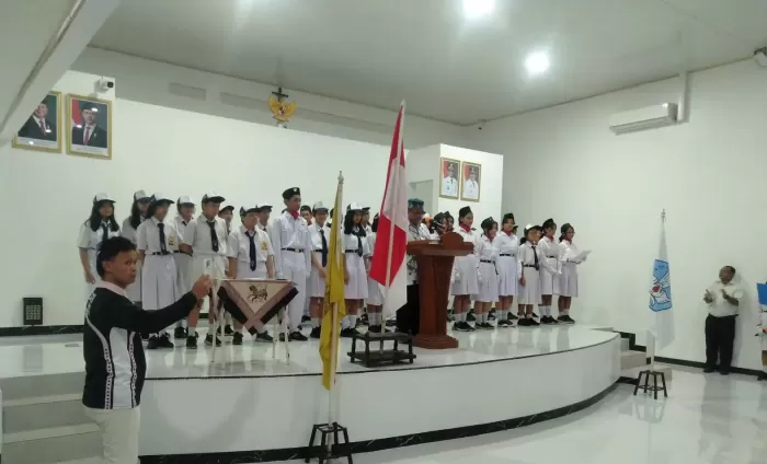 Senin, 23 Februari, suasana berbeda tampak dalam pelaksanaan upacara bendera di sekolah. Cuaca yang kurang bersahabat sejak pagi hari membuat kegiatan yang semula direncanakan di lapangan akhirnya dipindahkan ke aula yayasan. Meski demikian, seluruh rangkaian acara tetap berlangsung dengan tertib dan khidmat.